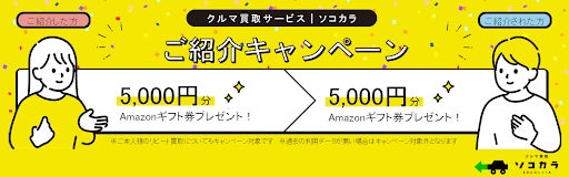 クルマ買取販売ソコカラ〈運営会社:株式会社はなまる〉(本社:大阪府大阪市住之江区/代表:岡崎和也)は、より多くのみなさまにソコカラのサービスをご利用いただけるよう、紹介した方・紹介された方それぞれに、5,000円分のAmazonギフト券をプレゼントする「友達紹介キャンペーン」と取引履歴のあるお客様向けの「リピート買取キャンペーン」を2024年4月10日(水)より実施いたします。
