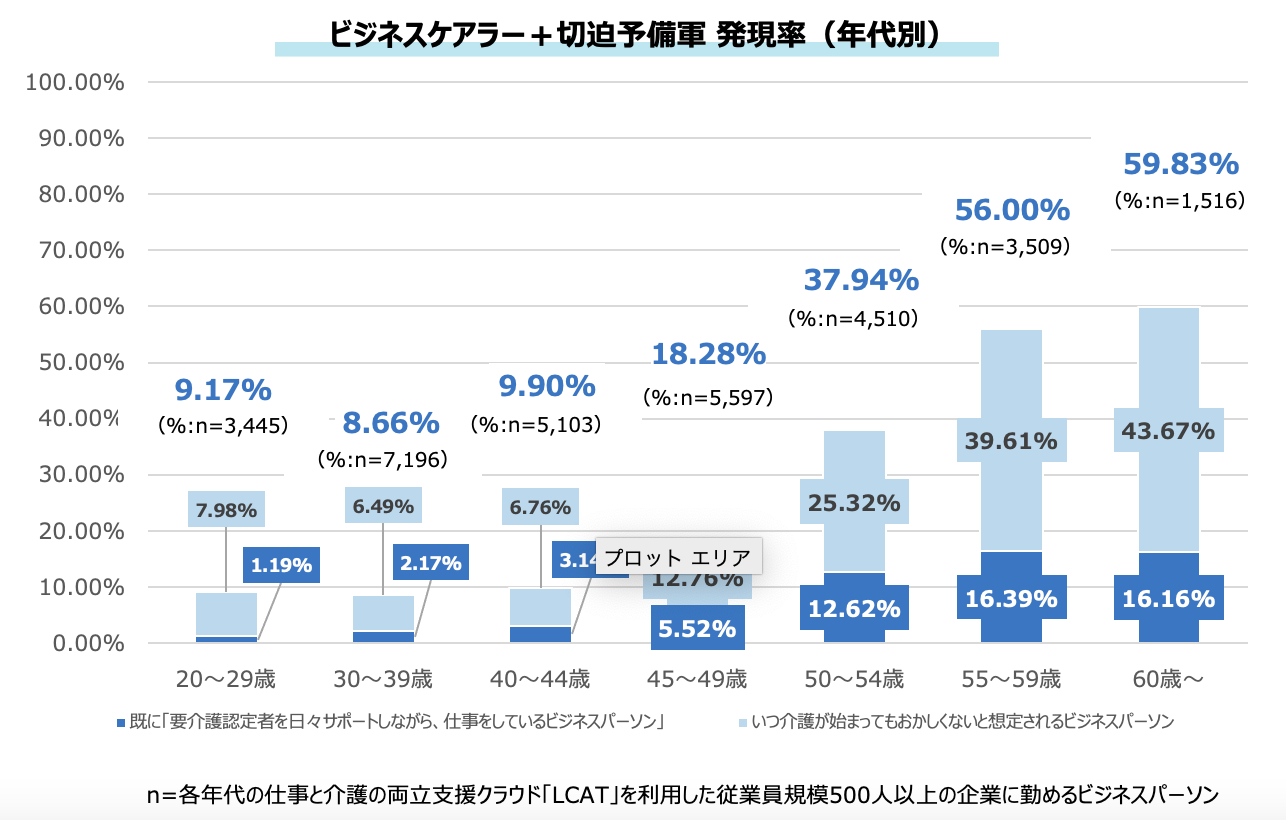 1.ビジネスケアラー層の裾野は、切迫予備軍も含めると若年層にも広がっている