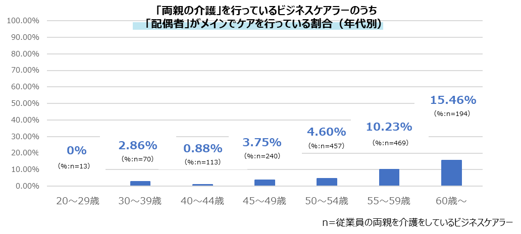 しかし、今回のビジネスケアラー調査を見る限り、現状は少数派であることが判明。実際、「配偶者が主たる介護者」であるビジネスケアラーの中にも、今後の持続可能性に不安を抱える声が目立つ。