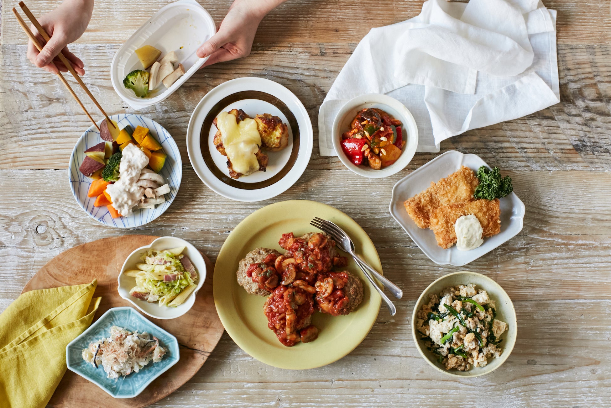 つくりおき.jpは調経験豊富なシェフと管理栄養士が監修し、専用キッチンで手作りしたお惣菜を、毎週ご家庭に冷蔵でお届けする宅食サービスです。1食あたり700円台(5食プランの場合749円)で炊事に関わる家事をお任せいただけます。現在1,000レシピ以上の料理を週替わりで提供しています。