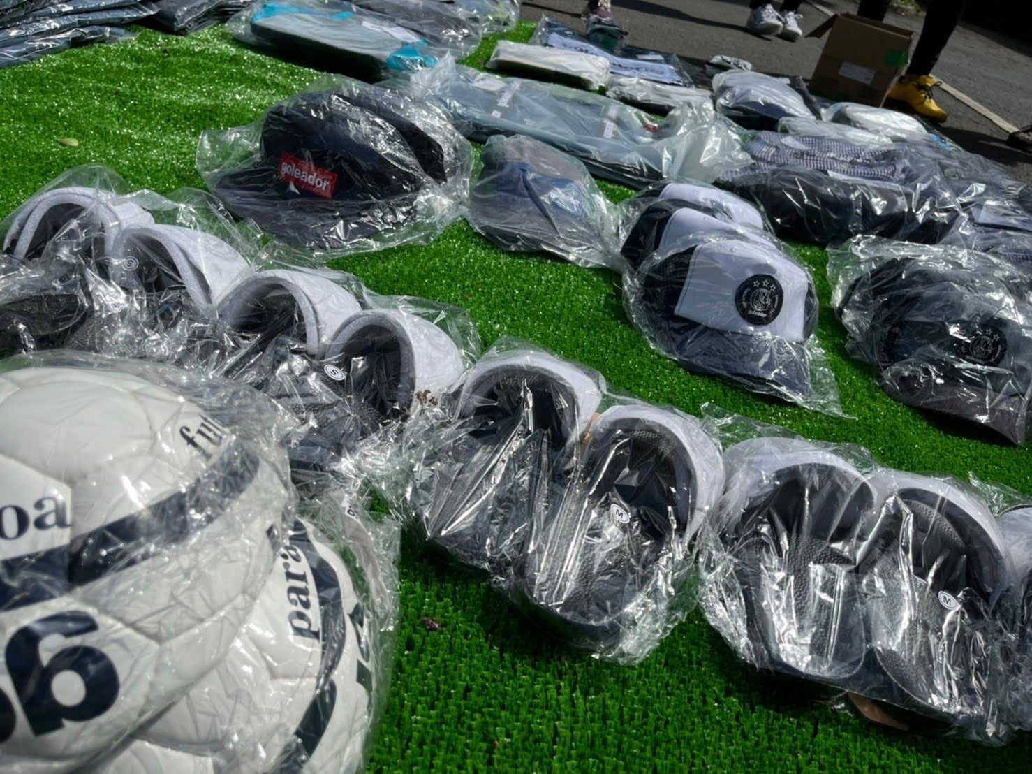 ウェアの運搬に協力して頂くことになったスーパーディーラーカトー様が、資金提供もして頂き、更にボールやバックなどのアクセサリー類もプレゼントできることになりました。