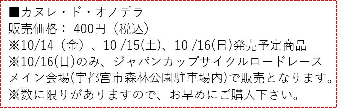 そして今回、宇都宮の有名洋菓子店「クイーン洋菓子店」が、小野寺玲のカヌレ秘伝レシピを再現し、ジャパンカップ期間で限定販売する事が決定しました。
