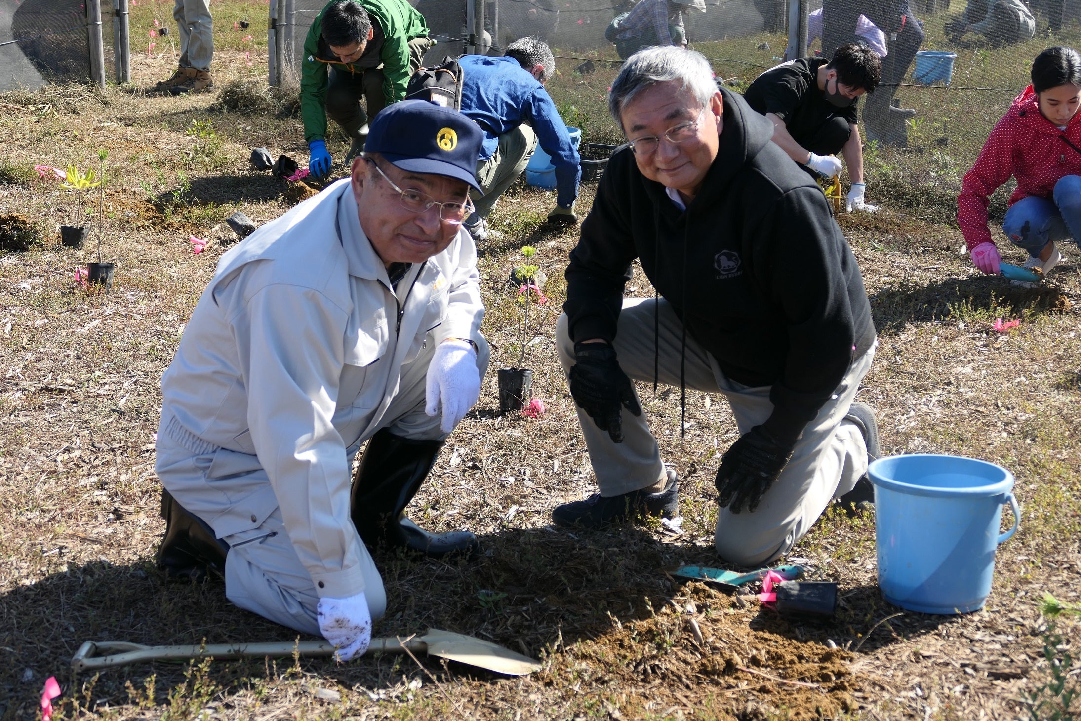 石巻市では、復興祈念公園での植樹活動として約10万本の植樹を計画しています。当社も包括連携協定の一環として、2019年から毎年当社従業員、お取引先様、石巻市民の皆さんで、力を合わせて植樹に取り組んで参りました。5回目となる今年、苗木本数が累計で1万本となり、当社が石巻市へ寄贈をお約束した1万本の植樹を達成いたしました。