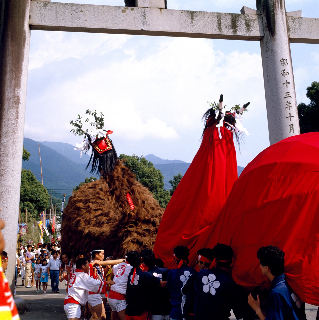 大きな5~6メートルの牛をかたどった竹組みの胴体に丸木で作られた長い首と恐ろし気な鬼面の頭と剣をかたどったしっぽが付いた牛鬼が、若者たちに担ぎあげられながら子供たちが吹き鳴らす「ブーヤレ」の音を従えて、長い首を打ち振りながら練り歩きます。