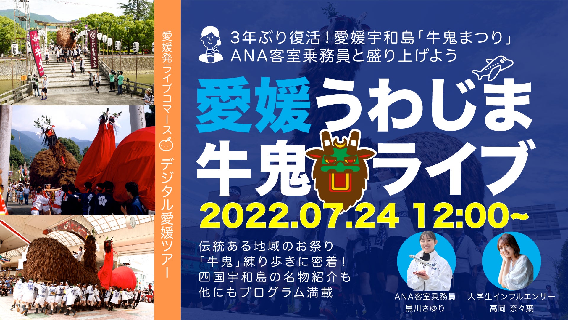 株式会社クリエ(愛媛県松山市)による、地元愛媛県をライブコマースで紹介するデジタル愛媛ツアーが、2022年7月24日(日)12:00より株式会社クリップス(東京都渋谷区)が運営するライブコマースプラットフォーム『SharingLive』にて、愛媛県宇和島の伝統行事・牛鬼祭りをライブ配信予定。現地の熱気をそのままに全国へお届けします。