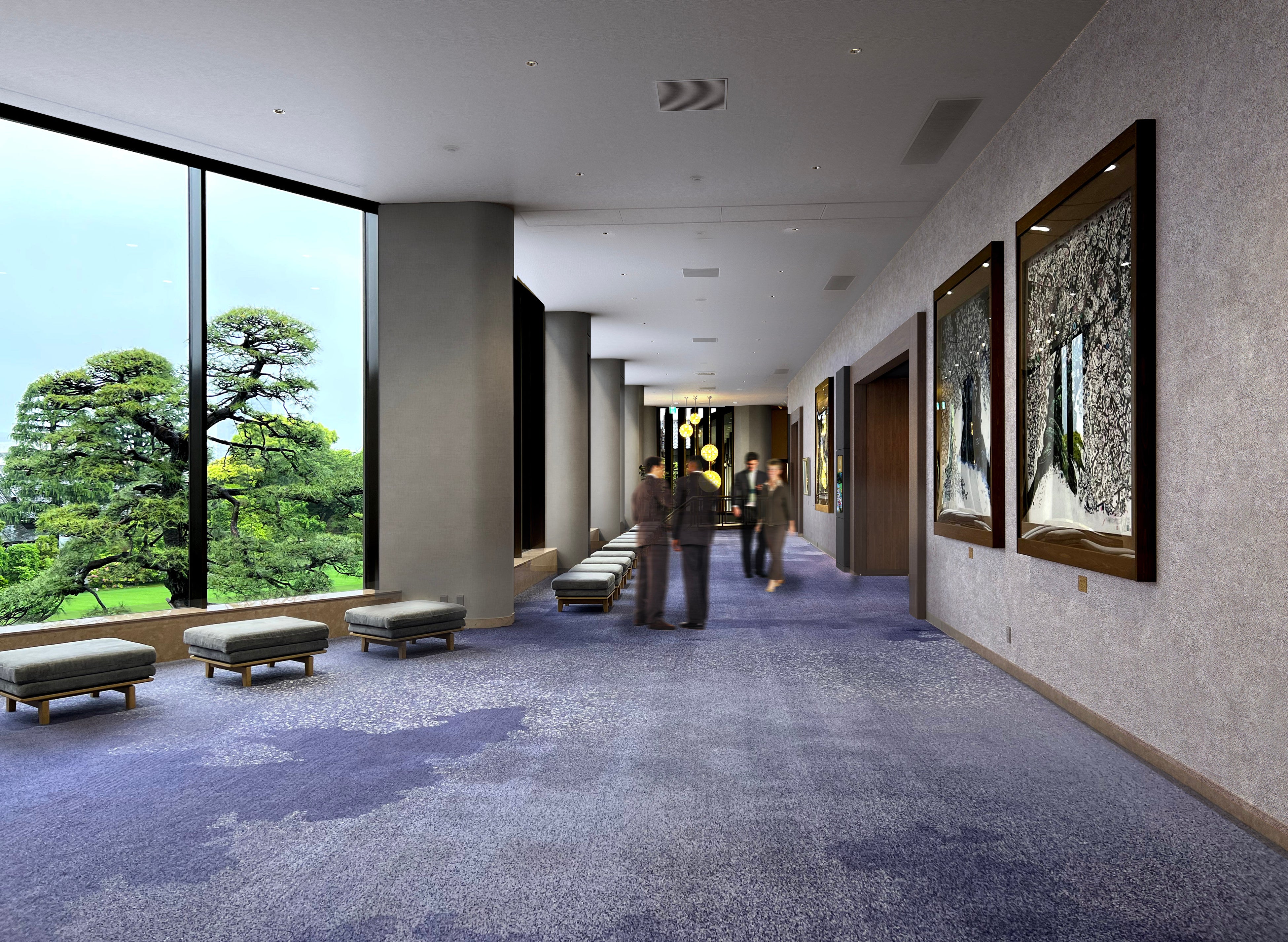【明治記念館】“エントランスがさらにクラス感のあるデザインに様変わり” 和モダンを基調としながらも、デザイナーとアーティストが意匠を凝らしたエレガントな空間にリニューアルしてお客様をお迎えします