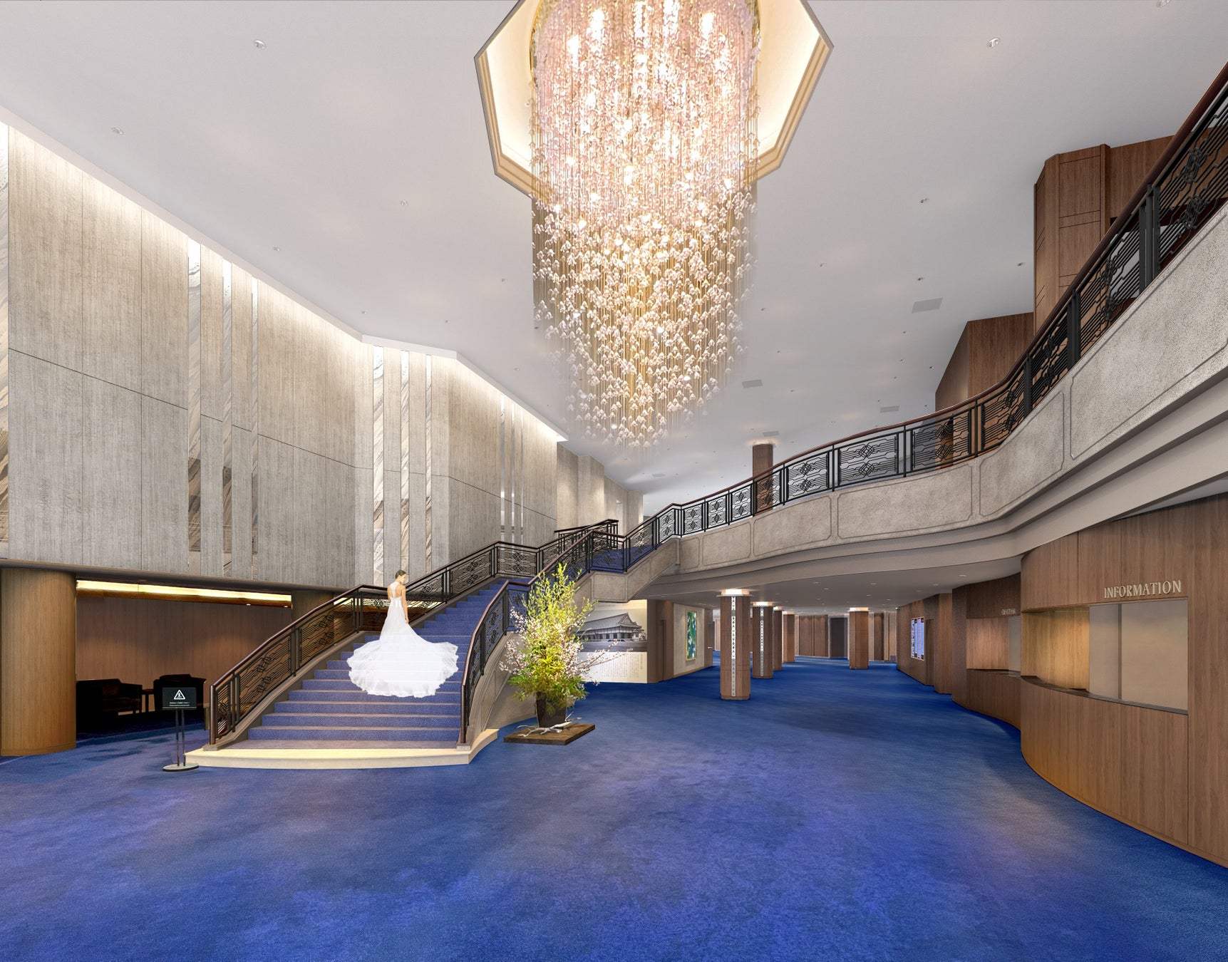 当館のエントランスは、一般のお客様が初めて足を踏み入れる場所であり、特別な舞台でもあります。そうしたお客様の特別な瞬間や空間を引き立てるよう、華美に過ぎる装飾ではなく、親しみやすさを保ちながら、人生におけるステージに相応しい、心地よい緊張感と気品のある空間に設えました。