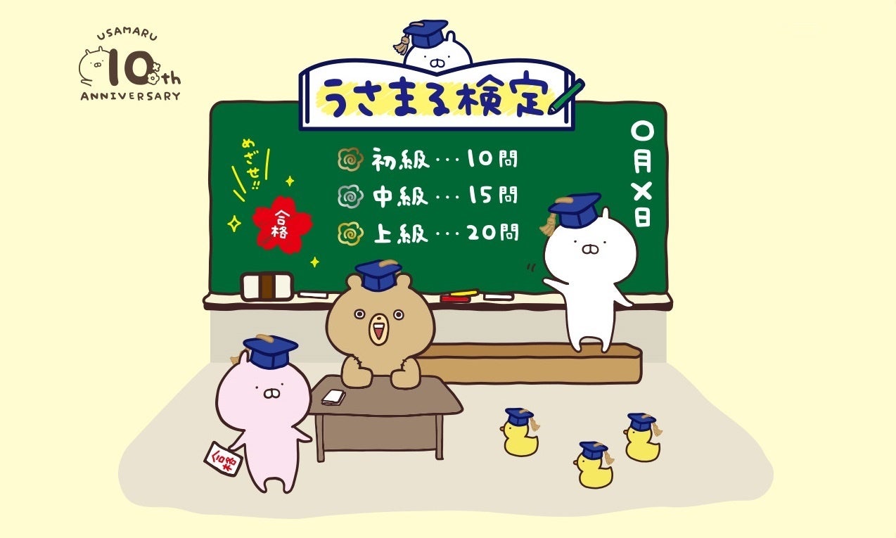 うさまらーの皆様が無料でどなたでも楽しめるコンテンツとして、うさまる10周年記念「うさまる検定2024」を4月2日(火)より実施します。レベルは初級・中級・上級の3つ。オンラインで期間中は何度でもチャレンジできます。全問正解したら合格となり、お名前入り(ニックネーム可)の合格証をオンライン発行することができます。