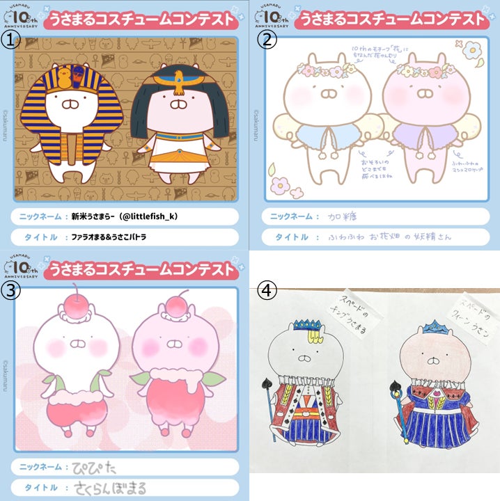 今年1~2月に実施された「うさまるコスチュームコンテスト」では、約1,000件ものユーザー投稿が寄せられ、10 周年イヤーのスタートを盛り上げました。Xでの一般投票により、ぬいぐるみ化される最優秀作品が決定。8月に発売を予定しています。