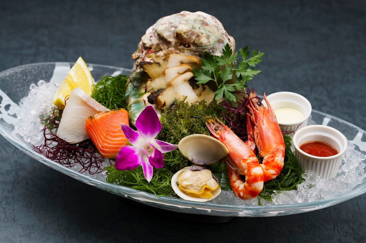 沖縄のブランド魚である琉球スギや夜光貝、宜野座の車海老が味わえるシーフードプラッターに、キングダム特製OXテールスープ、メインディッシュは、国産牛のサーロインなど3種類の中からお好みのお肉をお選びいただける充実のコースです。