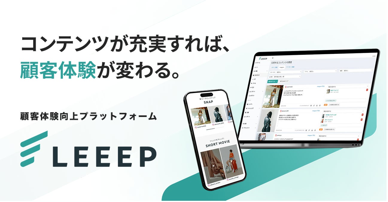 「LEEEP(リープ)」は、UGC、動画コンテンツ、レビュー、ウェブ接客など、多様なコンテンツを活用することで、ブランド独自の価値を高め、顧客との深いエンゲージメントを構築する顧客体験向上プラットフォームです。