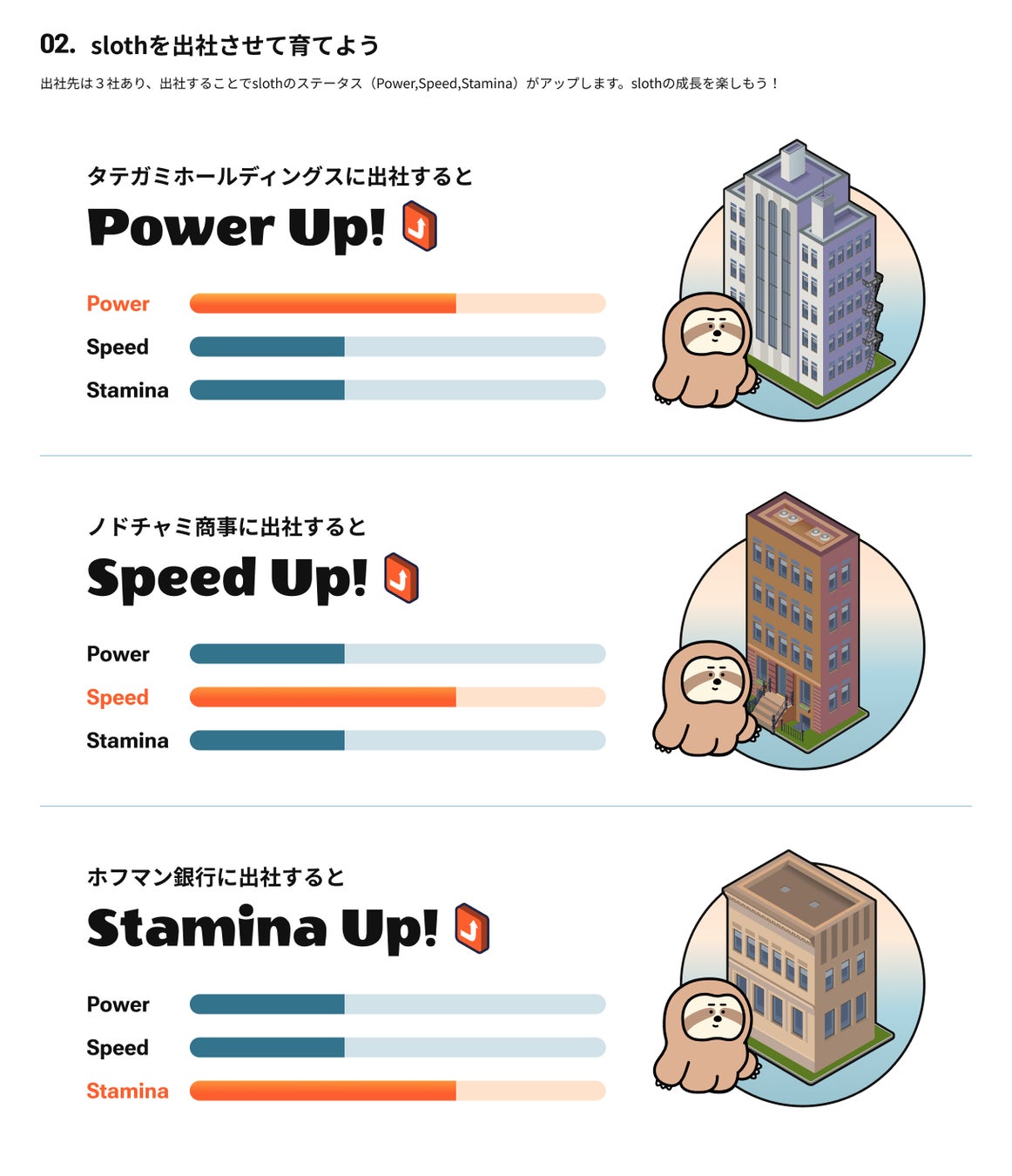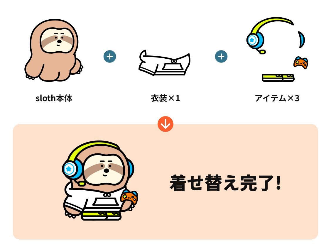 また専用サイトでは、着せ替えたslothを出社させてステータスを成長させるミニゲーム機能の実装を予定しています。