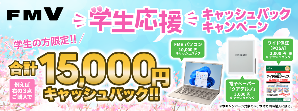 ・FMV学生応援キャッシュバックキャンペーン ※4:https://www.fmworld.net/campaign/24spring/