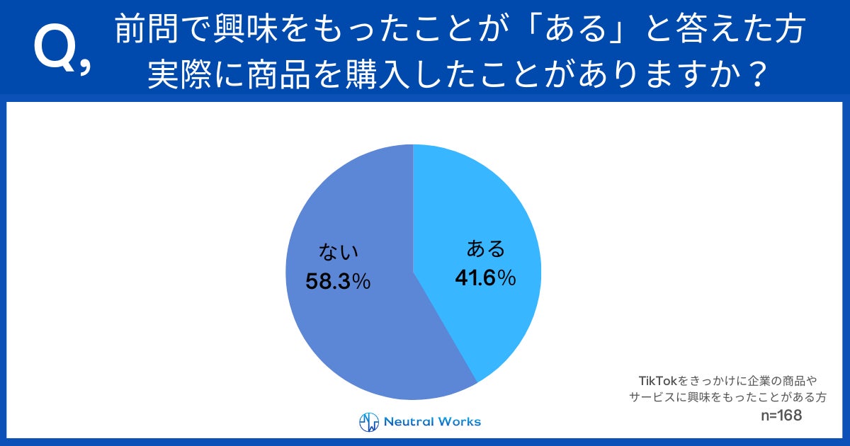 Q.前問で興味をもったことが「ある」と答えた方、TikTokをきっかけに実際に商品を購入したことがありますか?