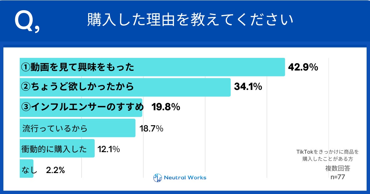 Q.TikTokをきっかけに商品を購入したことがある方、購入した理由を教えてください。