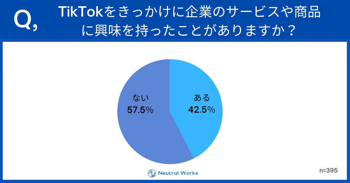 - 42.5%がTikTokをきっかけに企業のサービスや商品に興味
