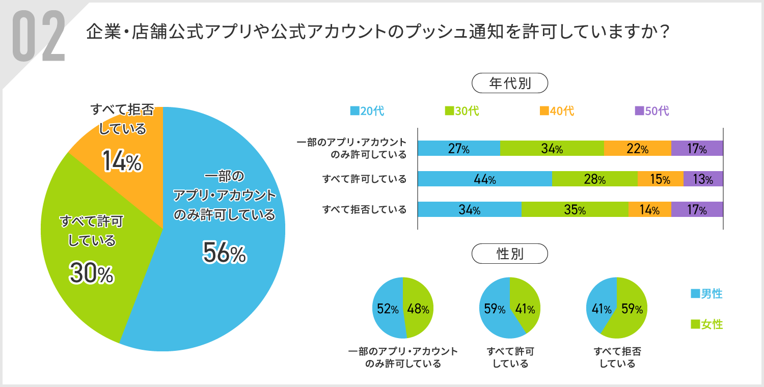 20代~50代の男女を対象とした、プッシュ通知に関する意識調査結果を紹介しました。