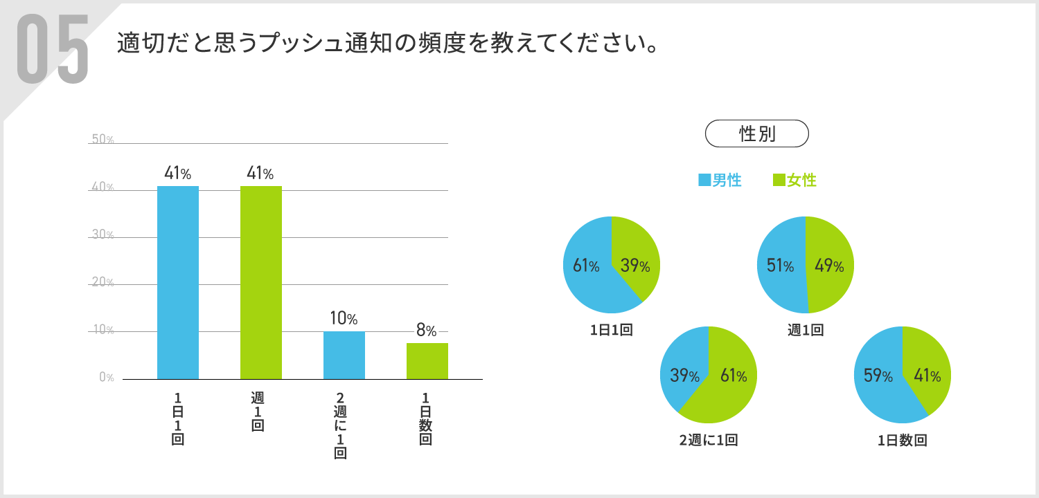 今回の調査では、ユーザーがプッシュ通知に求める内容や適切な頻度、確認するタイミングについての傾向を知ることができたかと思います。