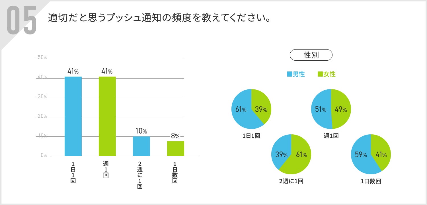 適切なプッシュ通知の頻度は「1日1回」「週1回」が多数