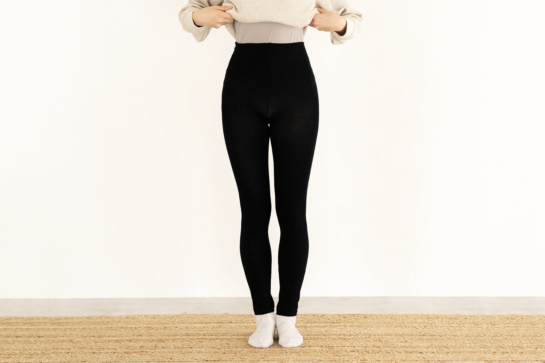 - メリノウールで腰から足全体を暖かく。毛玉も軽減した扱いやすいレギンス