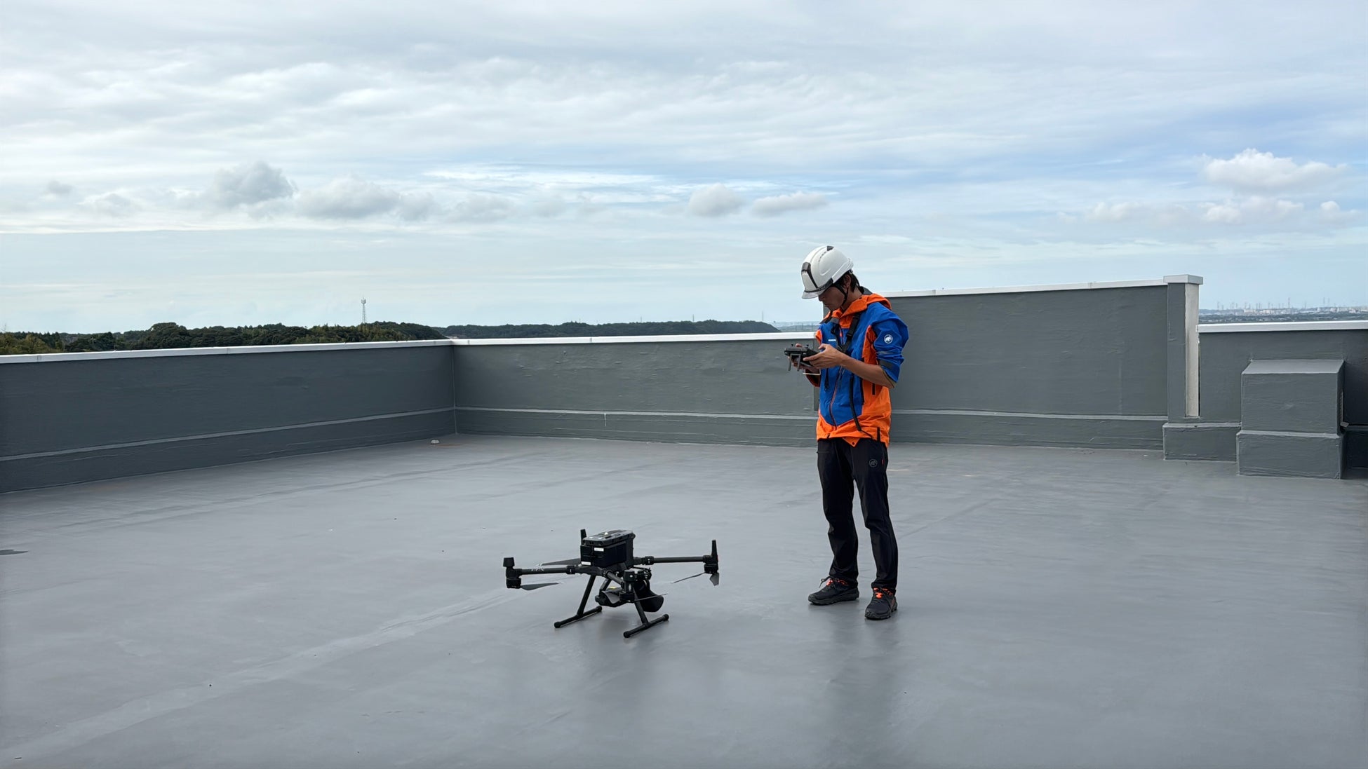 今回の実証実験では、MATRICE300を2機使用し、複数ある下校ルートのうち2つのルートを完全自動飛行でカバー。ドローンは下校生徒の動きを上空から見守り、映像および写真を記録することで不測の事態に備えました。