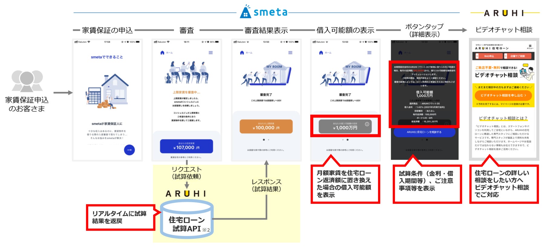 「個人の信用価値を最大化する」をミッションに掲げるリース株式会社(本社:東京都新宿区、代表取締役:中道康徳、以下「リース」)は、2022年1月12日(水)より、家賃保証付きお部屋探しアプリ「smeta/スメタ」へ、アルヒ株式会社(本社:東京都港区、代表取締役会長兼社長CEO:浜田 宏、以下ARUHI)の住宅ローンシミュレーション※1を搭載することをお知らせいたします。なお、まずはiOSアプリからサービス提供を開始します。追ってAndroidアプリも公開予定です。