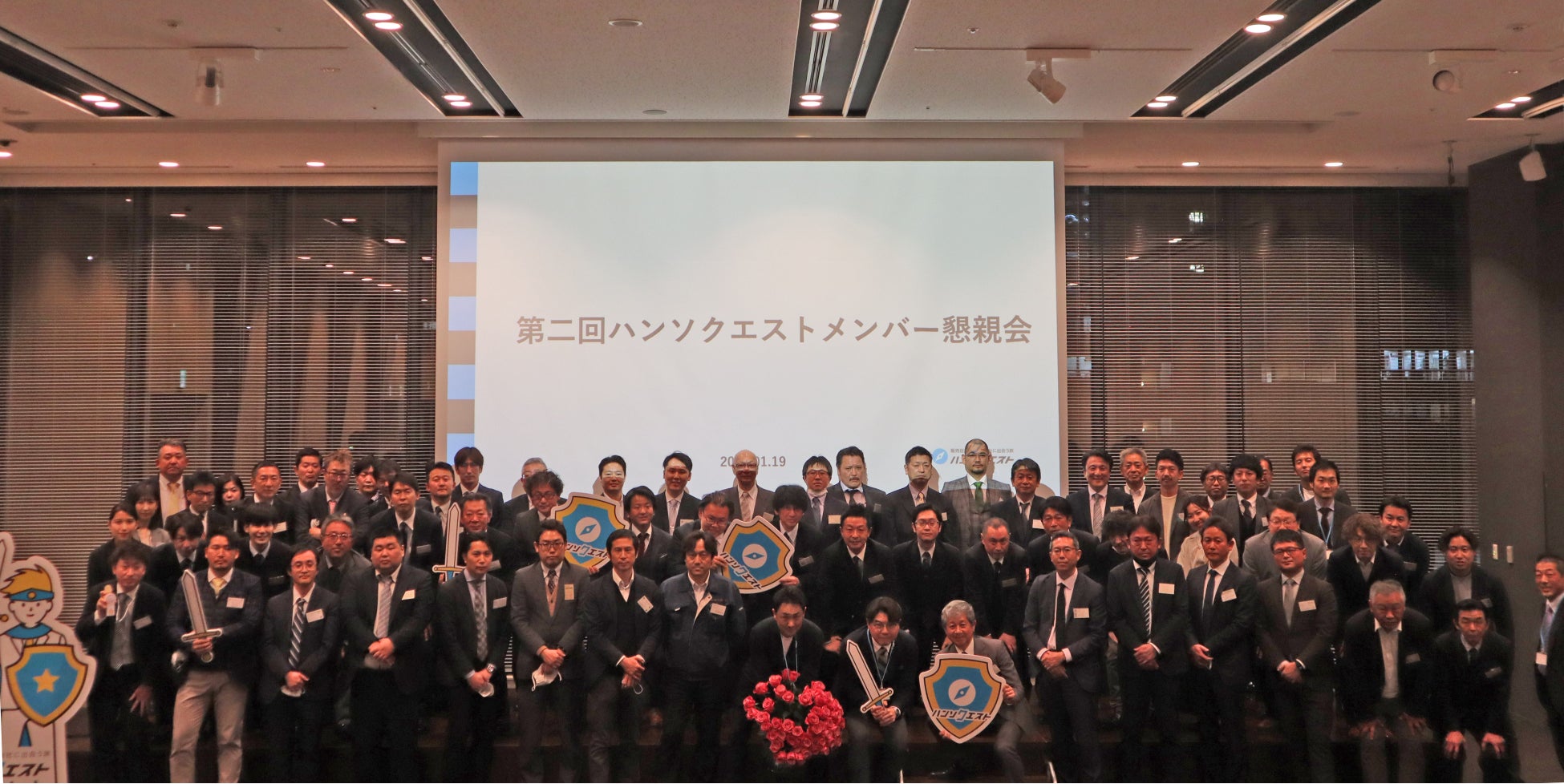 昨年6月のサービスリリース以降、コロナ禍もありメンバー間でのコミュニケーションが上手く図れない中、今回の懇親会には多くの方々にご参加いただくことができました。新しい営業先を開拓したい人、反対に仕入れ先を探している人、何か新しいアイデアに共に挑戦したい人など、メンバーの関わり方はそれぞれです。ですが、メンバーの皆様から「販促のプロが集まるハンソクエストの強みを活かし、新たにビジネスの機会を作りたい」という熱意を一様に頂戴し、大変嬉しく思います。ハンソクエストではサービス開始より順調にメンバーを増やして参りました。メンバー間でのマッチングをはじめ、サービスをご利用いただくメーカーや広告代理店、印刷会社といったユーザーとの実績も着実に増えてきています。今後はよりユーザーの利便性を高め、メンバーの受注件数の増大に努めて参ります。またメンバーへの新規事業提案とアライアンス推進を一層強化し、集団の強みを最大限に活かしたハンソクエストならではの経済圏の確立へ邁進して参ります。