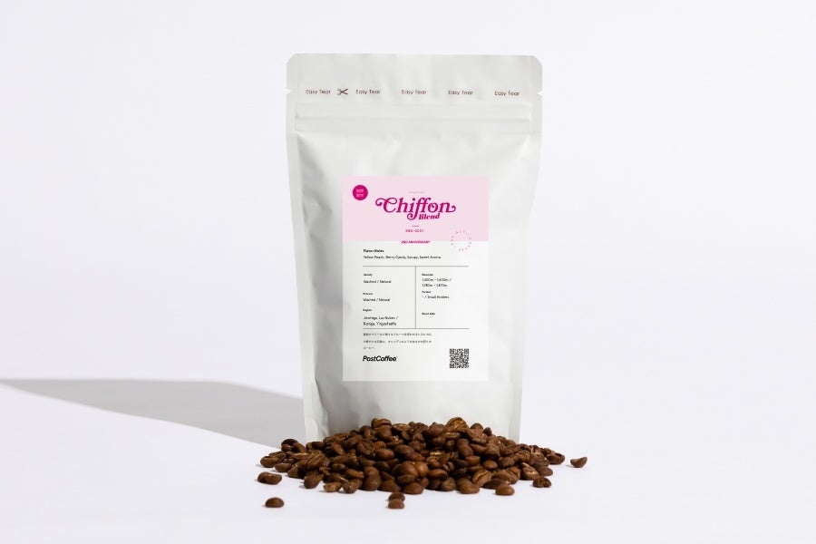 そんなPostCoffeeの2周年を記念し、期間限定発売のオリジナルブレンド「Chiffon Blend」の販売を開始します。これまでに発売してきたオリジナルブレンドは数多くあるラインナップの中でも特に人気の商品です。ここまでサービスを支えてきてくださった会員の皆様への感謝を込めて、飲む人の気持ちを明るくしてくれるような、華やかかつ日常に溶け込むようなブレンドを作りました。本商品は2022年2月7日(月)より、PostCoffee会員専用のストア(https://app.postcoffee.co/)にてご購入いただけます。