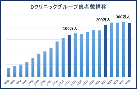※1 1999年7月~2023年1月 Dクリニック、クレアージュ延べ患者数