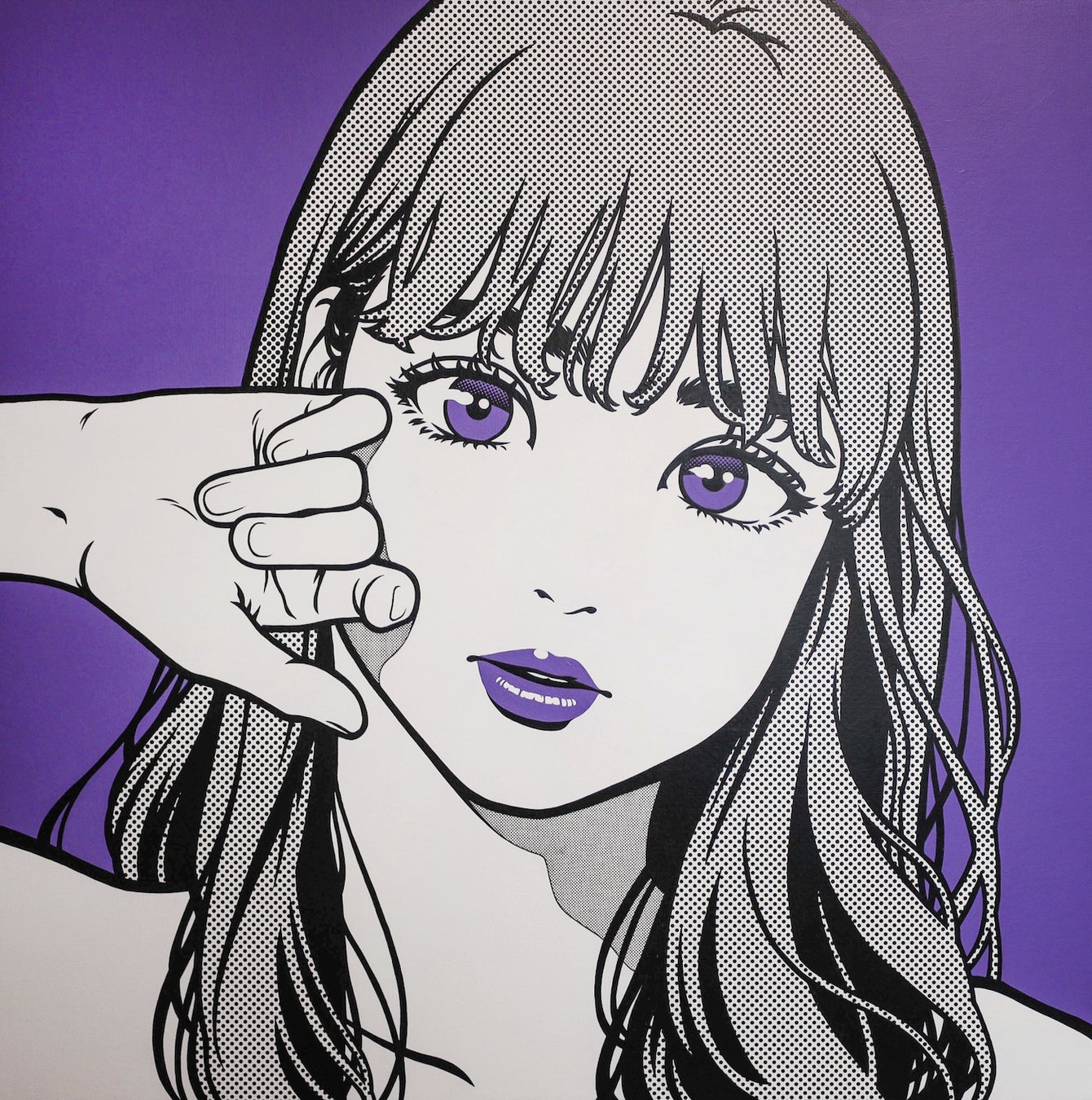 ポートレートで女性のリアルな表情を描き、POPアート表現とイラスト表現の融合させた表現力が見どころ。優しく見える一方で芯のある女性が描かれた作品は見る人を魅了します。