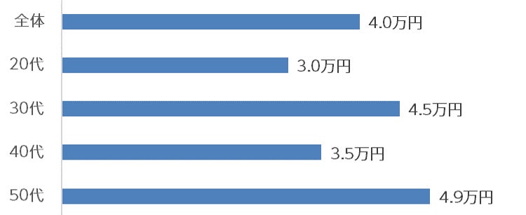 ご褒美スキンケアの予算を年代別でみると。50代が最多の平均4.9万