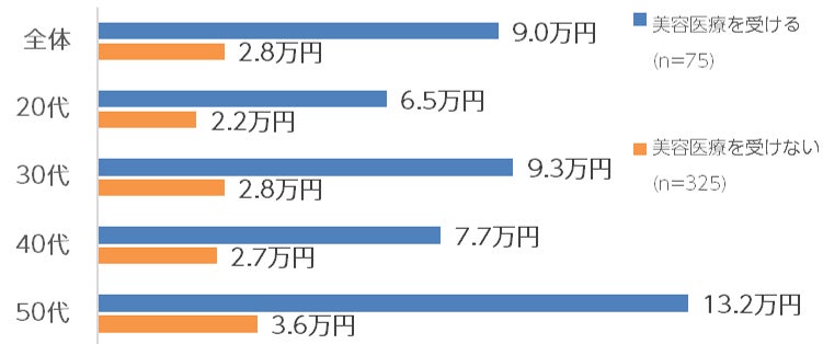 50代では、美容医療を受ける/受けない層で、予算に約10万円の差