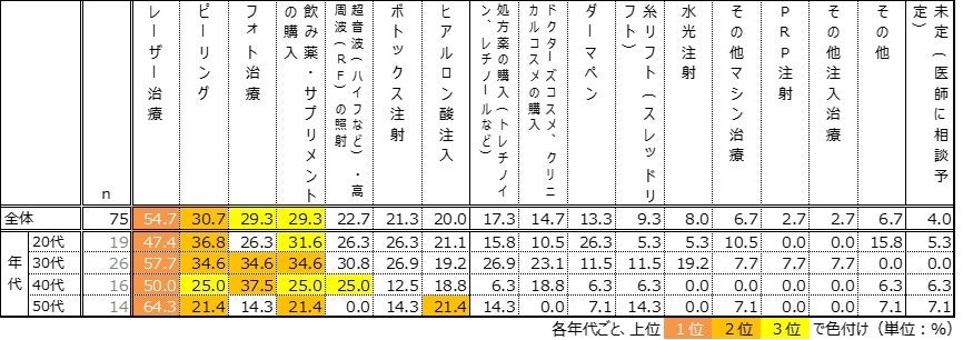 ■“ご褒美”美容医療は、レーザー治療が 54.7% と最多