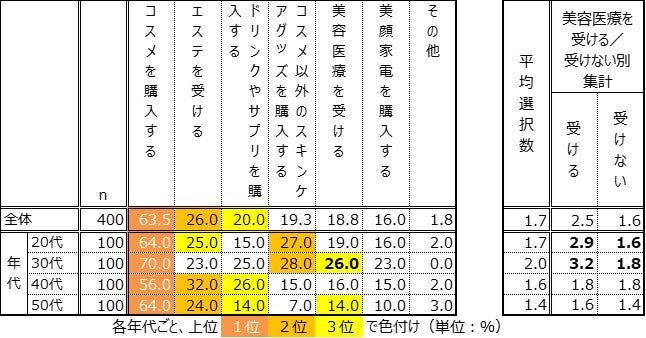 「美容医療」と回答した20代30代は、ご褒美で行うことが1つ以上多く、美容により積極的