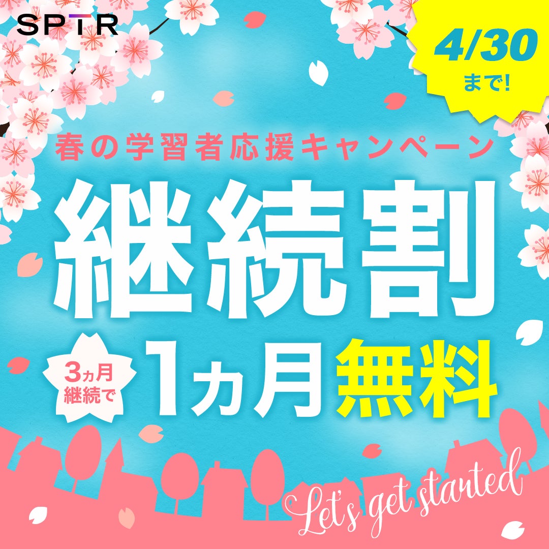 オンライン英語トレーニングを提供するスパトレ株式会社(本社:東京都千代田区、代表取締役:向井麻里絵)は3カ月間継続で1カ月無料の新年度特別キャンペーンを開始することをお知らせいたします。