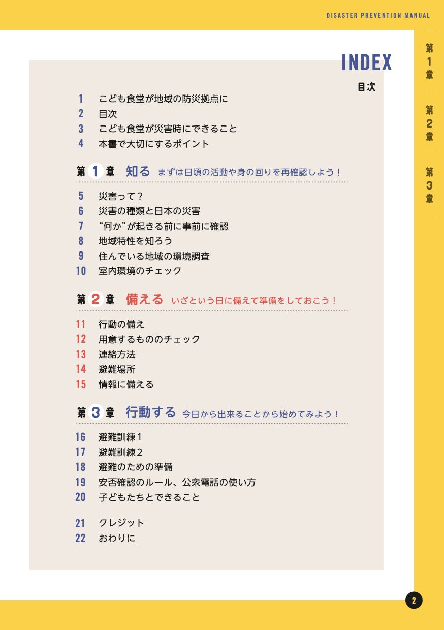 本書は、むすびえが発行元となり、過去に災害時に炊き出しや弁当などの支援活動を行った経験を持つこども食堂の運営団体などから形成された「こども食堂地域防災拠点化事業検討委員会」が制作に当たりました。
