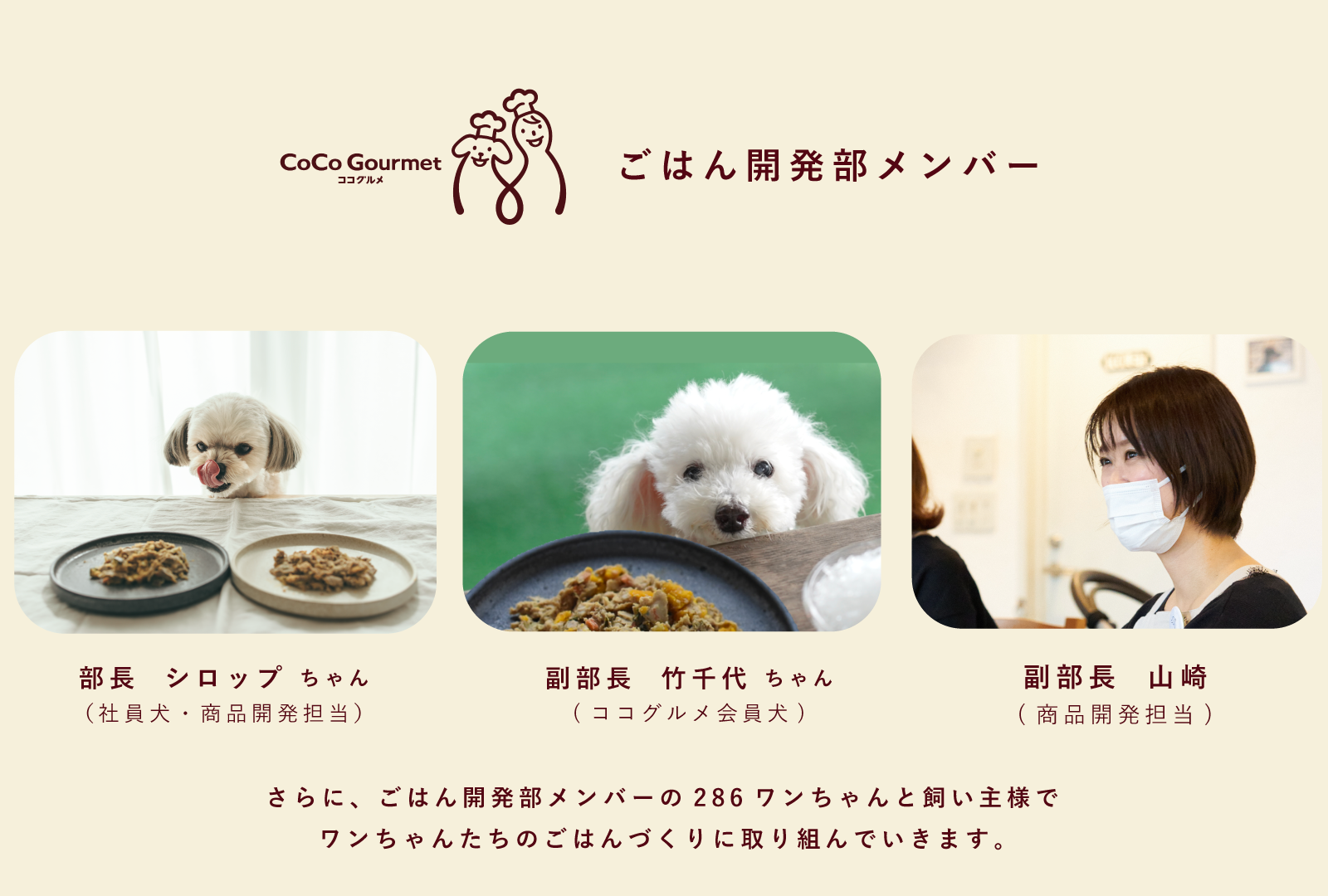 会員数No.1フレッシュペットフードのココグルメが「ごはん開発部」を創部。286頭のワンちゃん・愛犬家様と一緒に新商品の開発を行います。