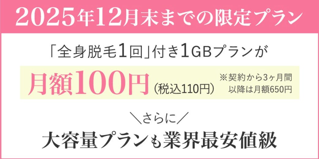 ~ 全身脱毛1回がセットになり、月額100円(税抜)から始められるこれまでにない“美容付き”ケータイキャリア! ~