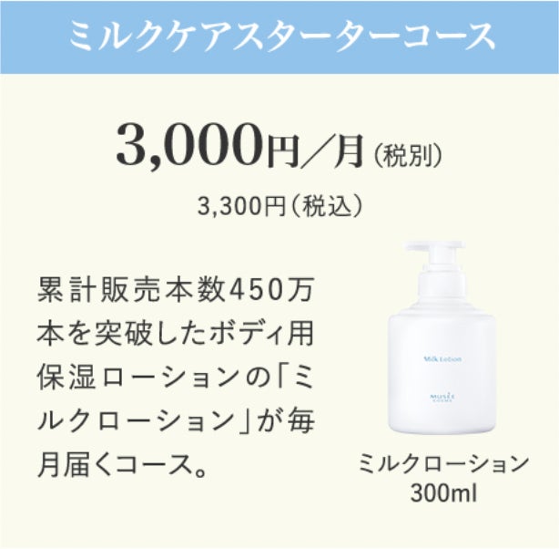 ① 「ミルクケアスターターコース」 月額3,000円(税込3,300円)