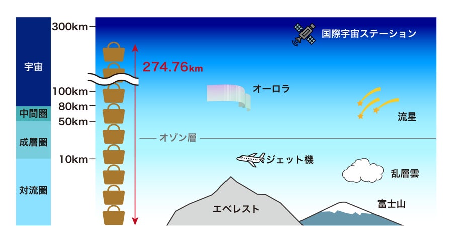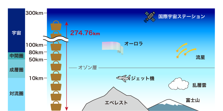 もし、その数を積み重ねてみるとなんと274.76kmもの高さとなり、これは宇宙まで届く高さとなります。