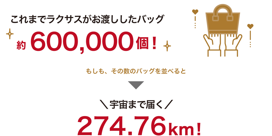 サービス開始から7年間でみなさまにお届けしたバッグは600,000回を突破。