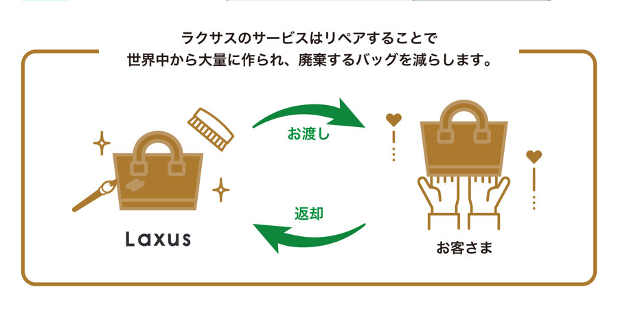 大切にメンテナンスしながらバッグを循環させることで、廃棄になったバッグは1つもありません。