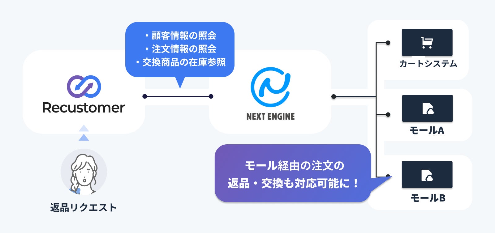 「Recustomer 返品・キャンセル」がNEXT ENGINEとの連携強化により、ECモールの返品・交換作業の自動化が可能に
