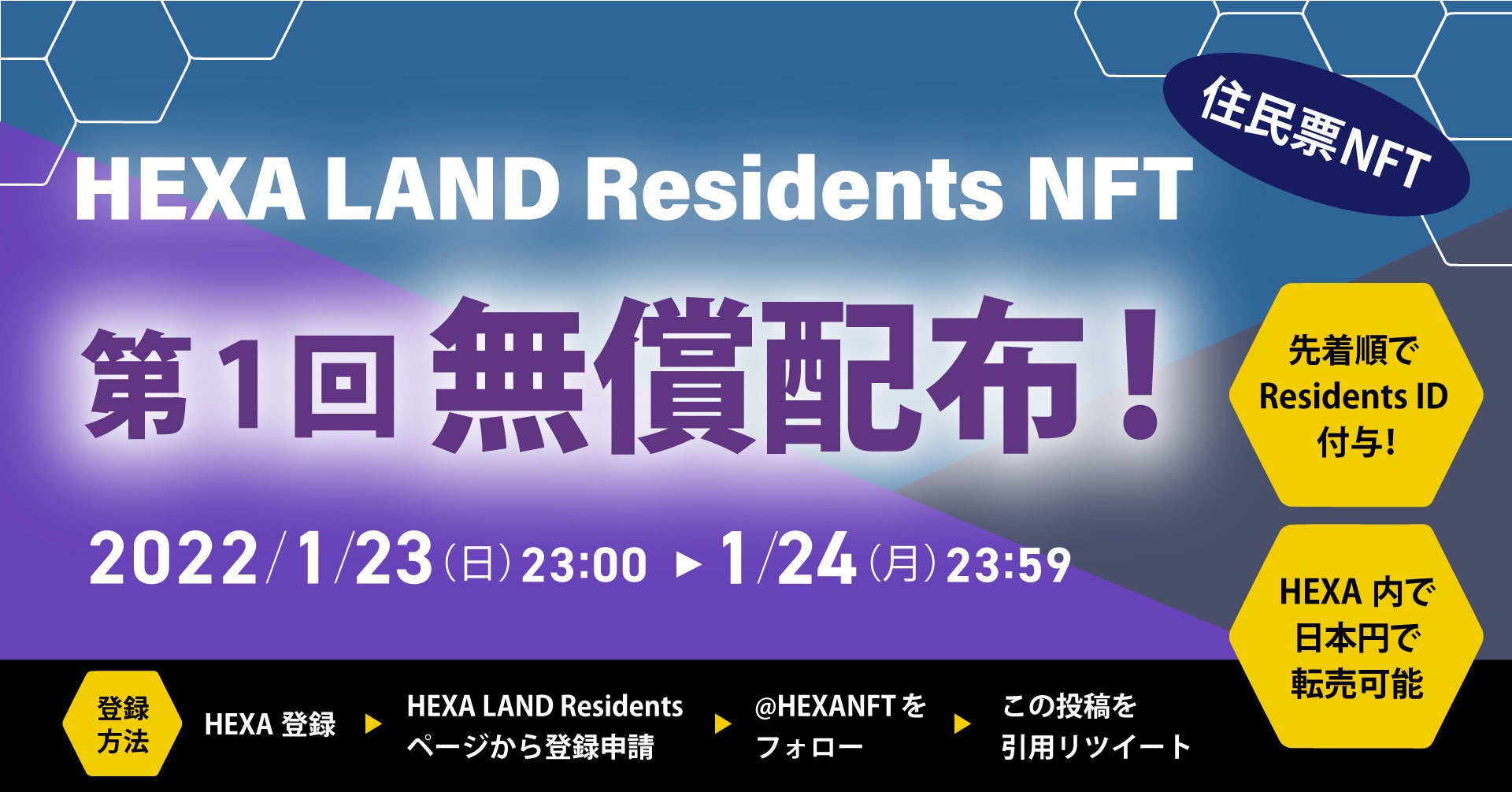 住民票NFTを無償配布!HEXA(ヘキサ) LAND Residentsの第1回住民登録は期間限定1/24(月) 23:59まで!WEB3.0の幕開け
