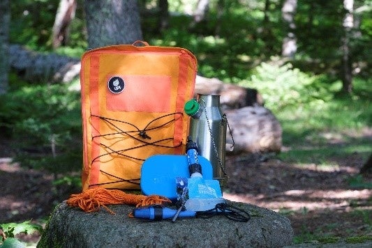 アウトドアライフショップ UPIのライフラインサポートバッグ。いつやってくるかわからない災害に対して、「飲料水を得る」「火をおこしてお湯を得る」といった、重要なライフラインをサポートするためのアウトドアアイテムを取りまとめたセット。日常的にアウトドアを通して道具に親しんでおくことで、もしもの時に備えるスキルとして応用できます。