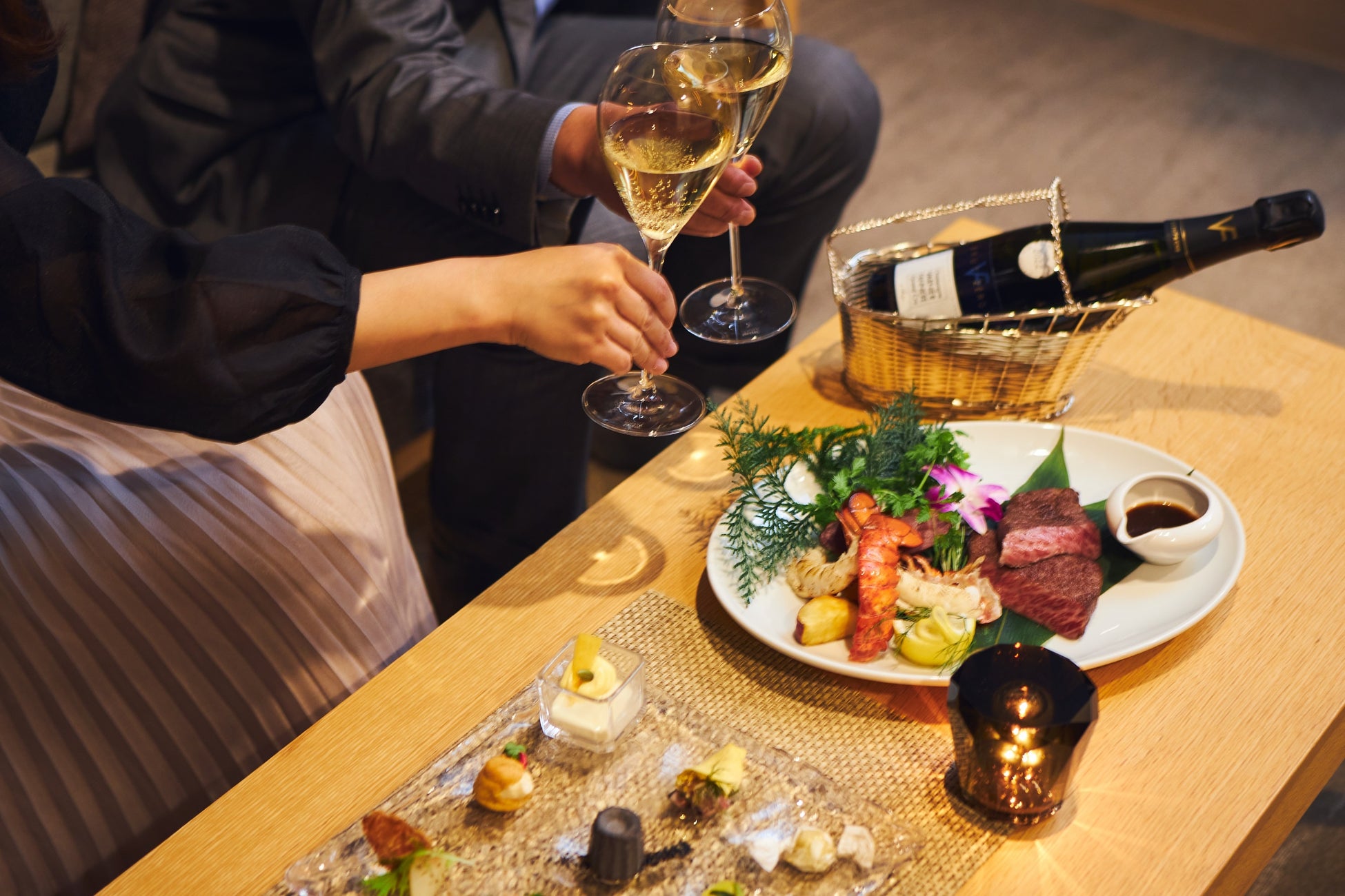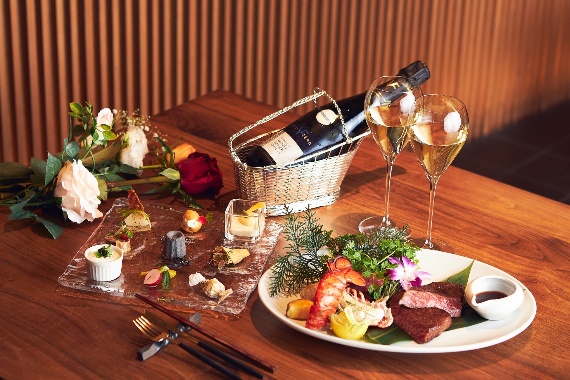 内 容:限定3室のプレミアムジャパニーズモダンルームでオマール海老と和牛のステーキをシャンパーニュを贅沢に楽しめる10周年記念プラン