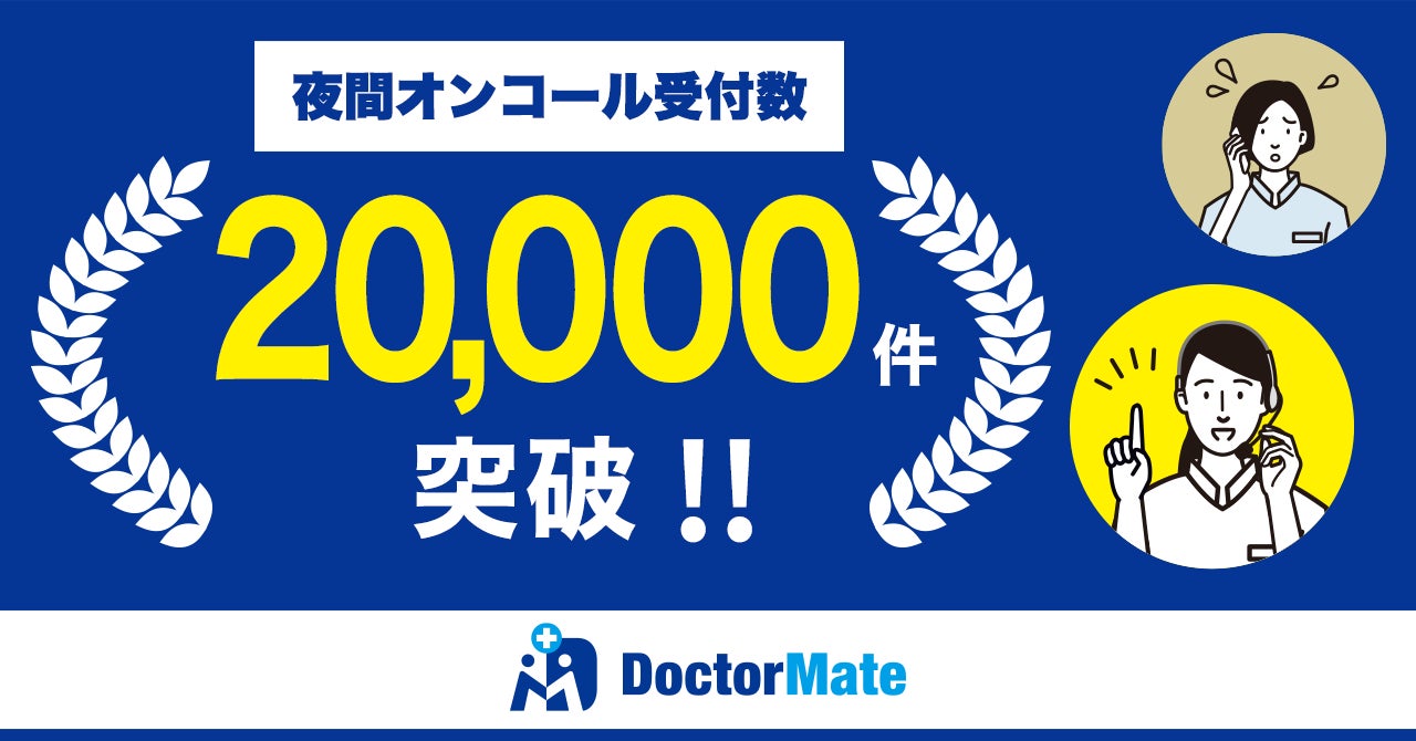 介護施設向けに医療相談・夜間オンコール代行™を提供するドクターメイト株式会社(本社:東京都中央区、代表取締役医師:青柳 直樹)が提供する「夜間オンコール代行™サービス」について、2023年1月にオンコール受付数が20,000件を突破したことをお知らせいたします。