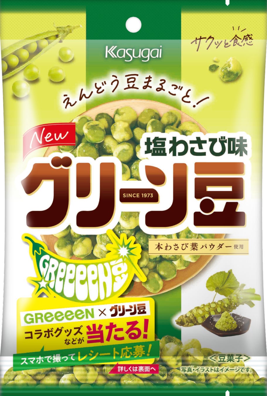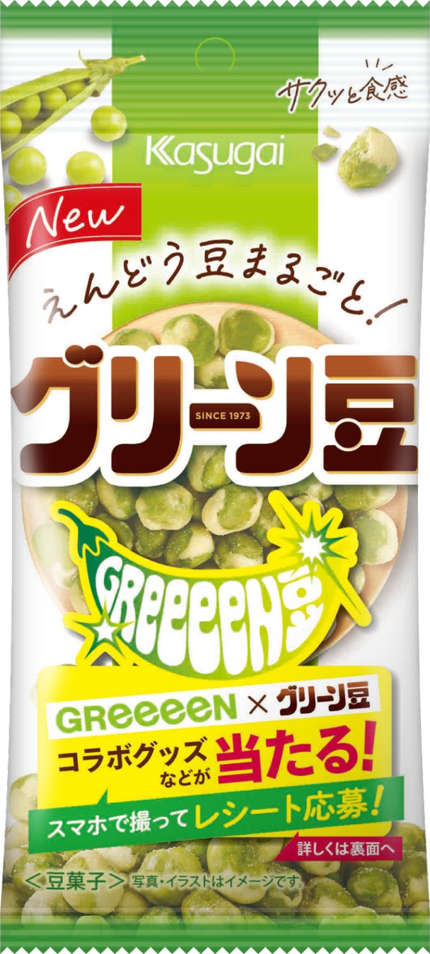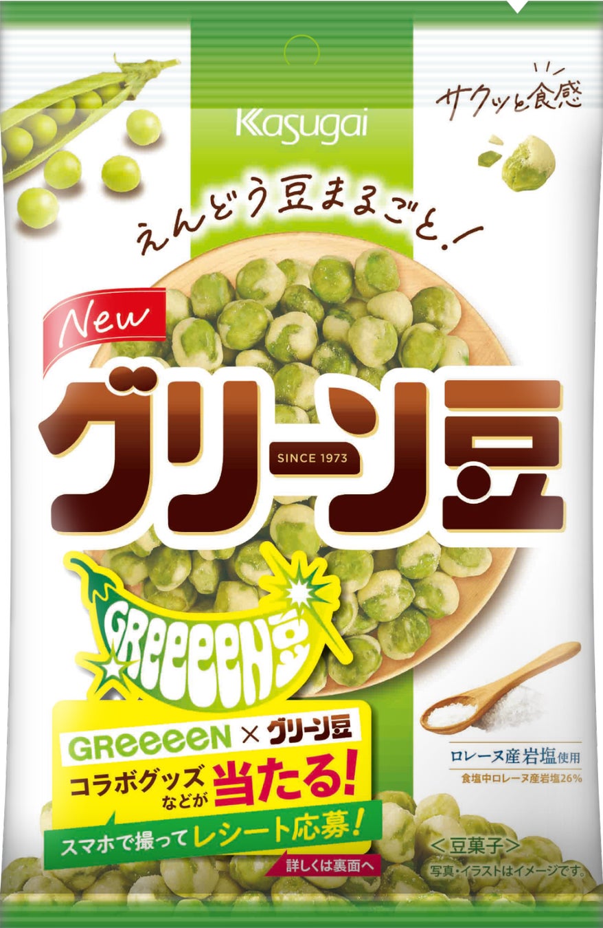 「グリーン豆」は、1973年にえんどう豆をまるごと使った豆菓子として発売され、今年で50周年を迎えたロングセラーブランドです。「グリーン豆」の発売50周年とリニューアルを記念した企画として、アーティストのGReeeeNが新曲『グリンピース』を書き下ろすなど、「音」と「豆」のコラボレーションを実施中です。