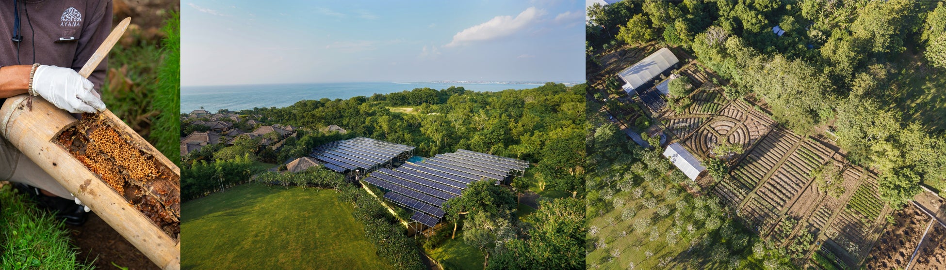 リゾート内の多様性と気候レジリエンスを高める取り組みとして、アヤナバリでは敷地内の養蜂場で3か月ごとにブラックハニー(黒蜜)を生産しており、21種の花々がこの活動を支えています。また、脆弱な沿岸環境を守るため、護岸壁や防波堤の整備にも着手しています。