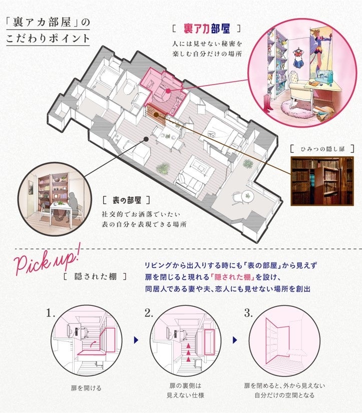 - 本棚の裏に隠された秘密の空間 「裏アカ部屋」を設置 (1住戸限定)